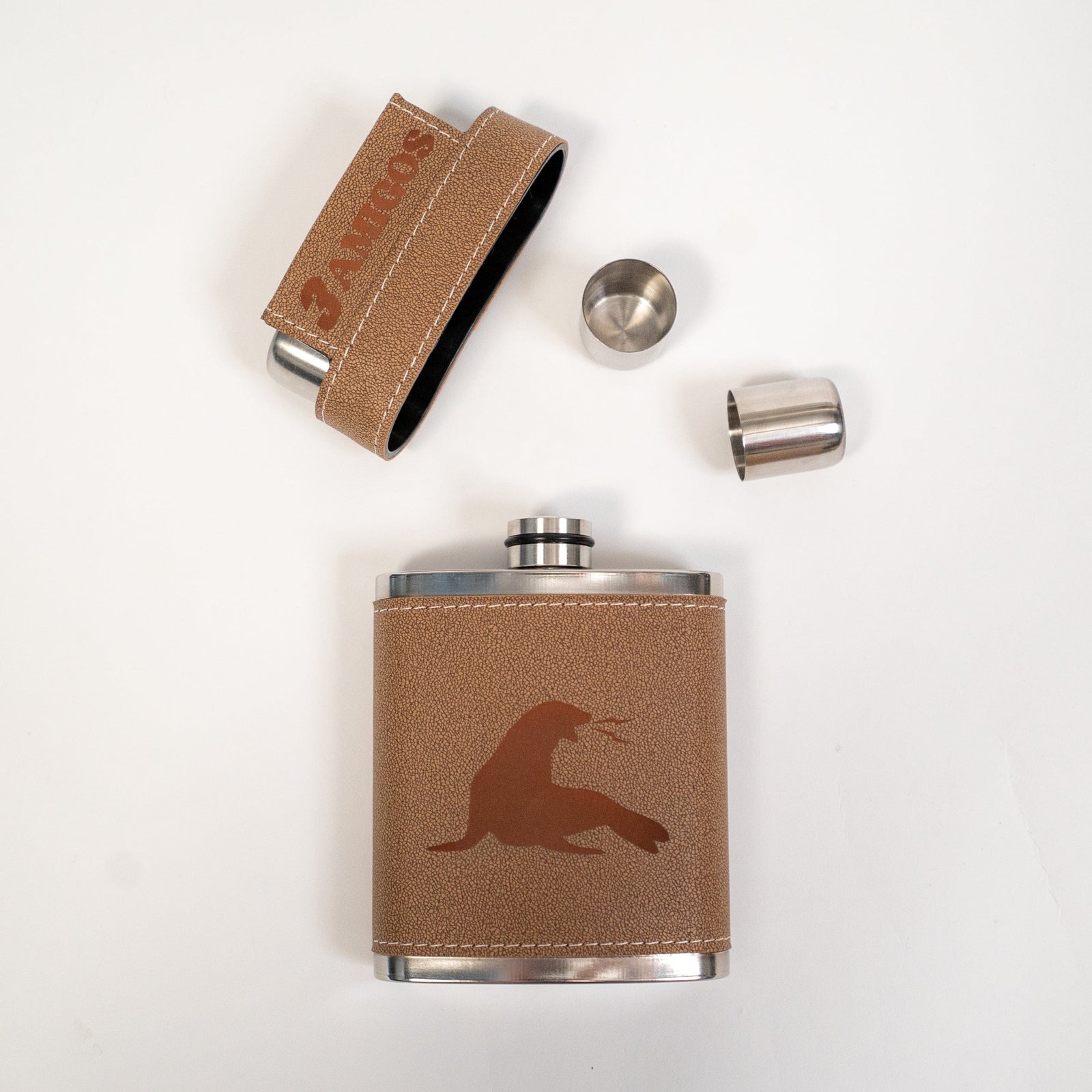 3 AMIGOS FLASK W/ SHOT GLASSES